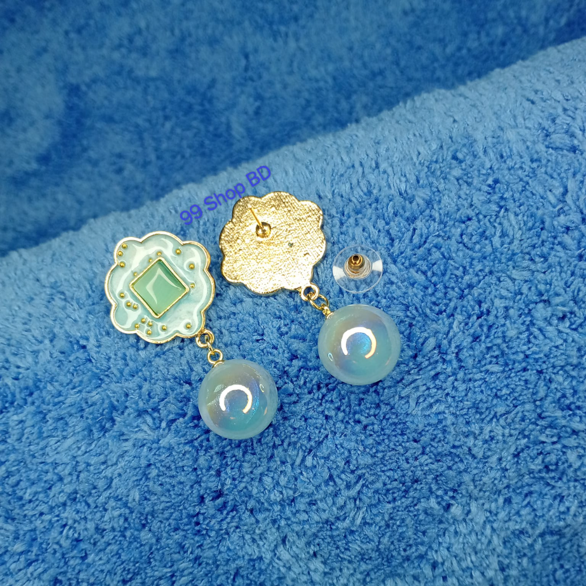 Blue Flower drop with Pearl earrings