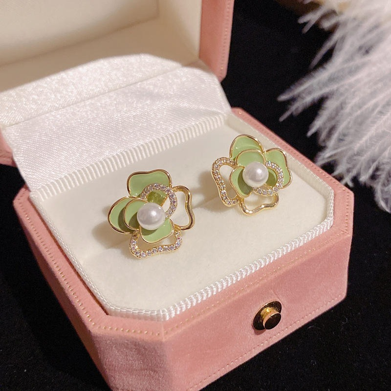 Vintage Elegant Pearl Ladybug Flower Stud Earrings