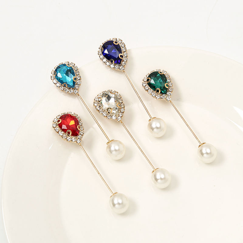 Colorful Rhinestone Pearl Brooch Hijab Pin