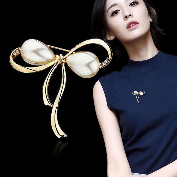 Pearl Brooch Bowknot Hijab Pin