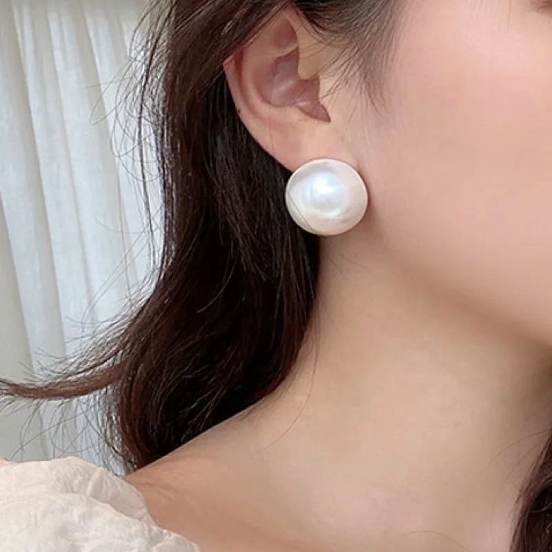 Vintage Elegant Pearl Ladybug Flower Stud Earrings