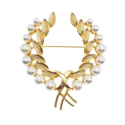 Leaf Hollowed Wheat Geometry Circle Round Brooch