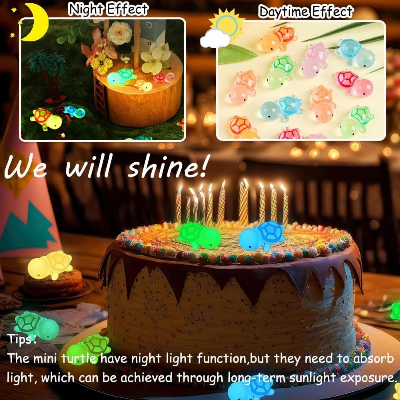 - This micro-landscape decoration with a small turtle theme and colorful luminous effect gives you a dreamy atmosphere. Its design is inspired by turtle in nature, and its lifelike shapes and details show a unique charm