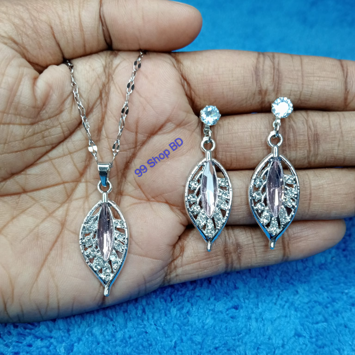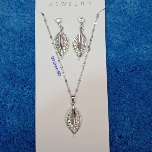 Silver Plated Crystal Leaf Shape Necklace Set