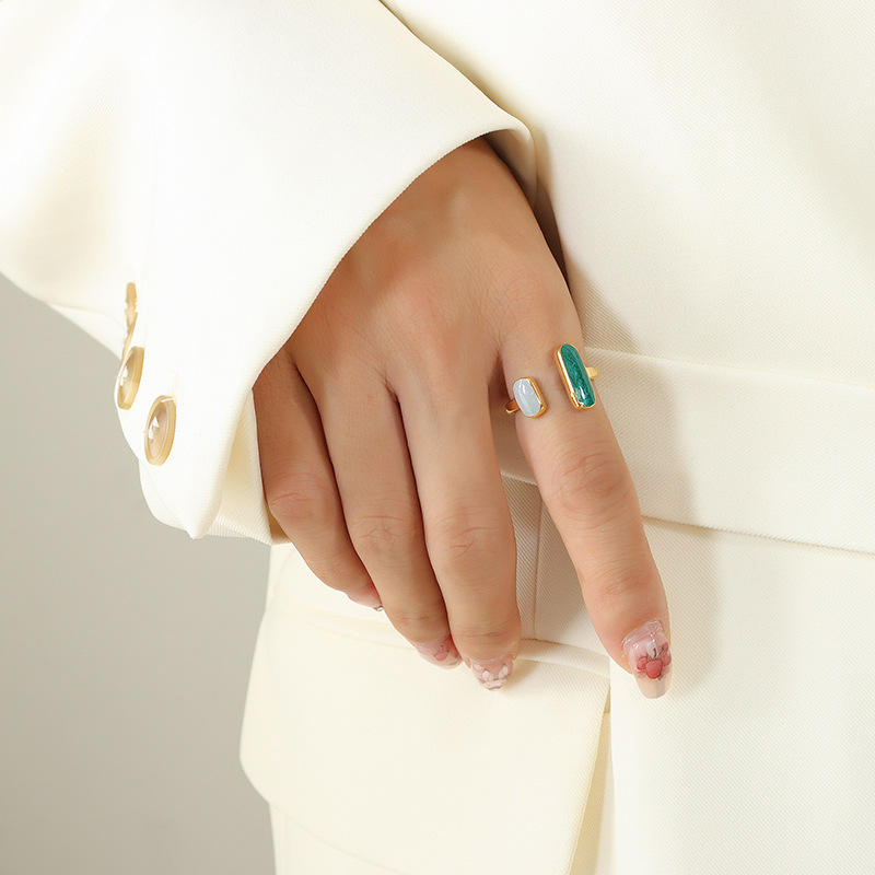 Stainless Steel Enamel Statement Open Cuff Rings for Women
