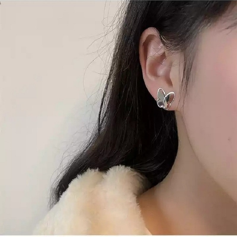 Elegant Silver Needle Pearl Butterfly & Flower Stud Earrings