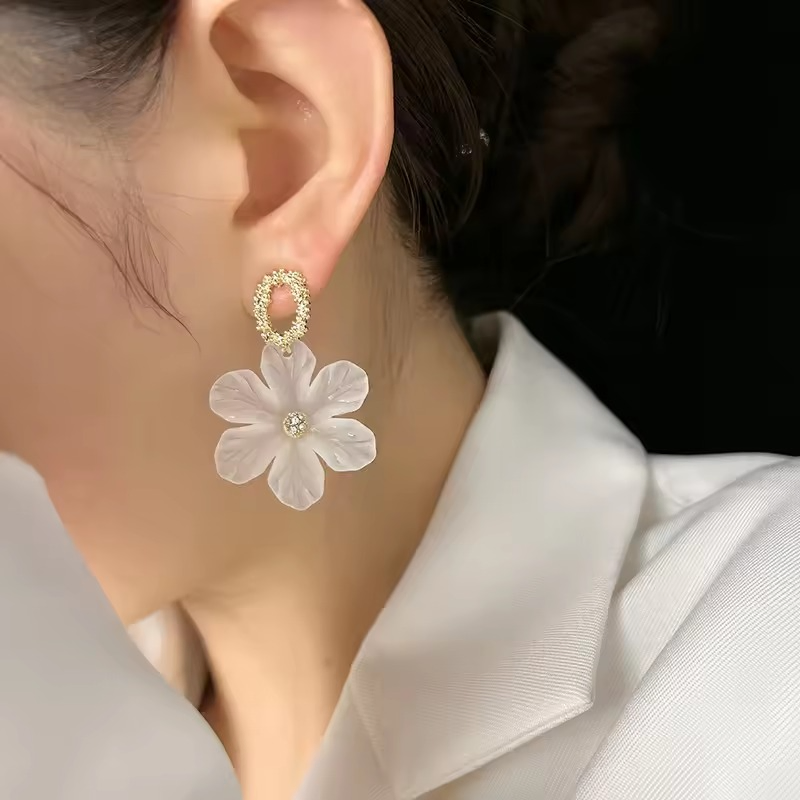 Elegant Silver Needle Pearl Butterfly & Flower Stud Earrings