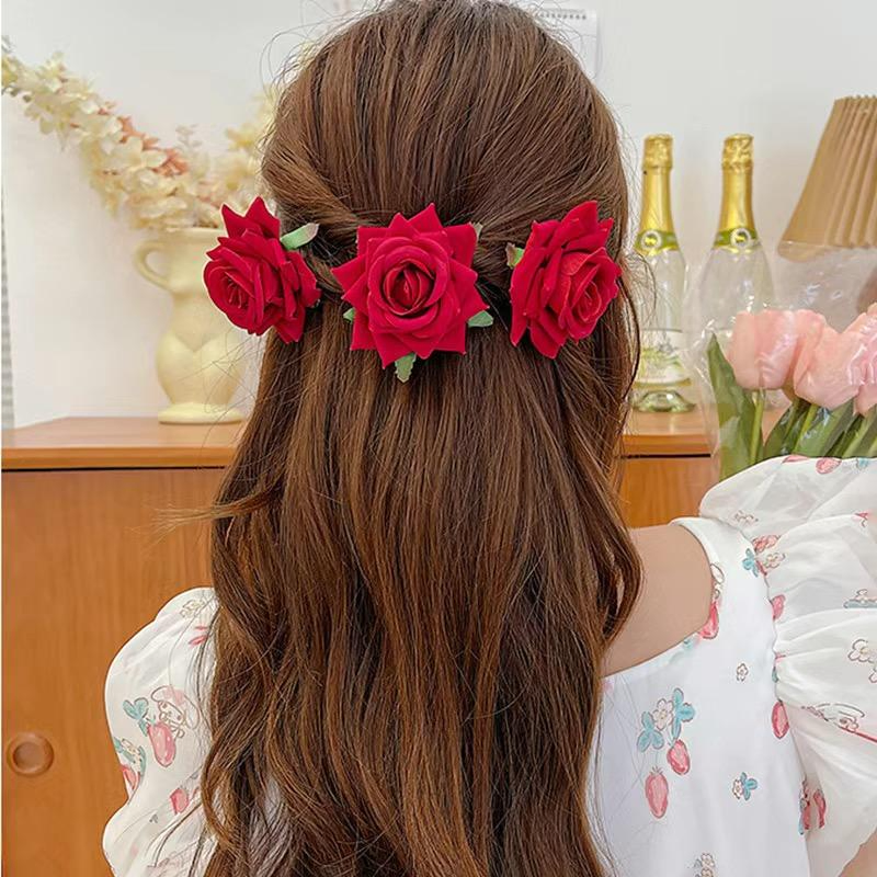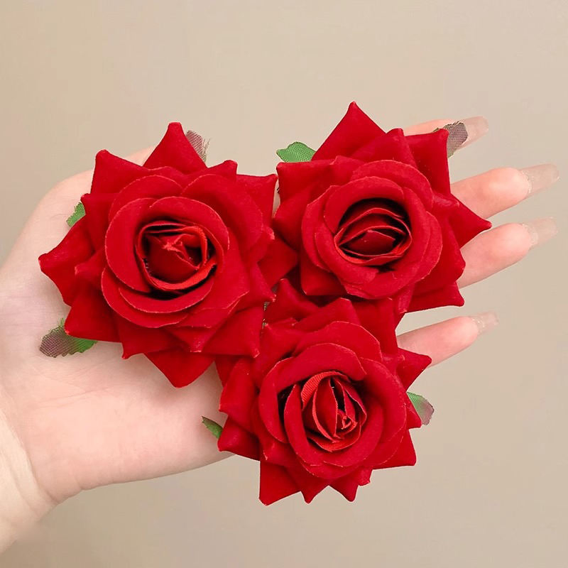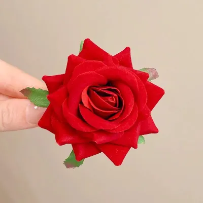 Vintage Velvet Red Rose Flower Hair Clip (1 pc)
